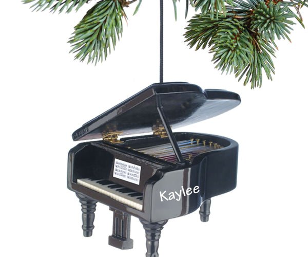 Grand Piano Black Personalized Christmas Ornament