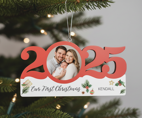 High-quality personalized 2025 ornament. The perfect personalized Christmas gift or personalized photo ornament for any season. Direct to Print custom prints.